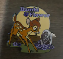 Bambi & Flower is an Open Edition pin from the Bambi pin series. It was originally released on , 2002 and was available from Disney Store US .
