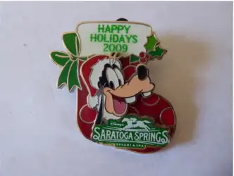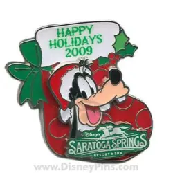 Saratoga Springs - Goofy stocking is a Limited Release pin from the Resort Holiday Collection 2009: Stockings pin series. It was originally released on , 2009 and was available from Walt Disney World .