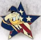 Donald is an Open Edition pin from the DLR Hidden Mickey Series 2008: Patriotic Stars Collection pin series. It was originally released in July, 2008 and was available from Disneyland Resort .
