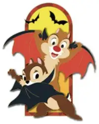 Chip & Dale is a Limited Edition (LE) 400 pin from the Halloween Vampires pin series. It was originally released on , 2024 and was available from Disney Studio Store Hollywood / Soda Fountain .