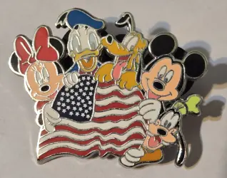 Fab Five with American Flag is an Open Edition pin from the Fab Five pin series. It was originally released on , 2010 and was available from Multiple Sources (WDW, DLR, etc.).