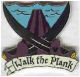 Walk the Plank is an Open Edition pin from the Cast Lanyard Series IV - Pirates Collection pin series. It was originally released in July, 2006 and was available from Disneyland Resort .