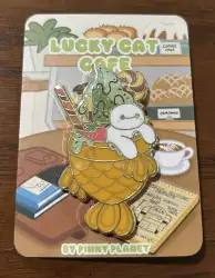 Lucky Cat Cafe: Baymax Matcha Taiyaki Ice Cream is a pin from the Fantasy Pin Series: PinnyPlanet pin series. It is an Unlicensed (Fantasy) pin, so therefore it is not allowed to be traded in the Disney Parks.