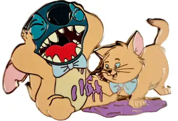 Pin features Stitch and Toulouse from Lilo and Stitch and The Aristocats