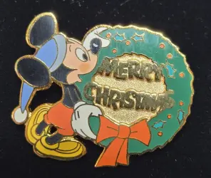 Mickey Holding Wreath is a pin. It was available from an Officially Licensed Disney trading pin vendor (see description for more information).