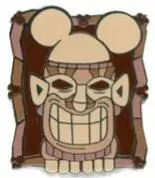 Brown Grinning Tiki is an Open Edition pin from the WDW Hidden Mickey Series 2008: Tikis Wearing Ear Hats pin series. It was originally released on , 2007 and was available from Walt Disney World .