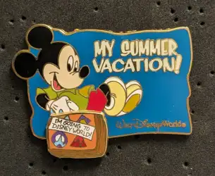 Mickey My Summer Vacation is a Limited Edition (LE) 5000 pin from the Summer pin series. It was originally released in July, 2002 and was available from Walt Disney World .