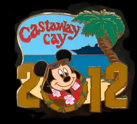 Mickey Mouse at Castaway Cay 2012 is a Limited Release pin from the Castaway Cay pin series. It was originally released on , 2012 and was available from Multiple Sources (WDW, DLR, etc.).