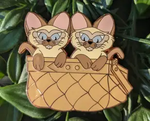 Si and Am in brown basket is a Limited Edition (LE) 50 pin from the Fantasy Pin Series: nekopopshop pin series. It is an Unlicensed (Fantasy) pin, so therefore it is not allowed to be traded in the Disney Parks.