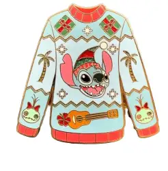 Stitch is a Limited Edition (LE) 5000 pin from the Gift Card GWP Promotion 2024 - Ugly Sweaters pin series. It was originally released on , 2024 and was available from Multiple Sources (WDW, DLR, etc.).