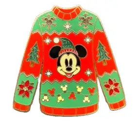 Mickey Mouse is a Limited Edition (LE) 5000 pin from the Gift Card GWP Promotion 2024 - Ugly Sweaters pin series. It was originally released on , 2024 and was available from Multiple Sources (WDW, DLR, etc.).