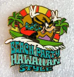 Surfing Goofy - Beach Party Hawaiian Style is an Open Edition pin from the Adventures By Disney - Legends of the Islands pin series. It was originally released on , 2006 and was available from Adventures by Disney .