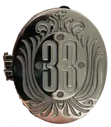Hinged Locket is a Limited Edition (LE) 650 pin from the Club 33 pin series. It was originally released on , 2004 and was available from Disneyland Resort .