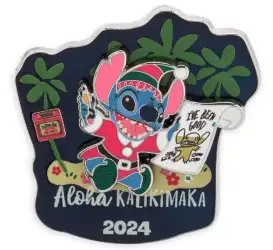 2024 Elf Stitch is a Limited Edition (LE) 5000 pin from the Aloha Kalikimaka pin series. It was originally released on , 2024 and was available from Multiple Sources (WDW, DLR, etc.).