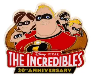The Incredibles 20th Anniversary is a Limited Edition (LE) 2000 pin from the Incredibles 20th Anniversary pin series. It was originally released on , 2024 and was available from Multiple Sources (WDW, DLR, etc.).