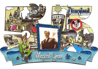 55 Magical Years Jumbo Dateline Disneyland is a Limited Edition (LE) 555 pin from the Disneyland 55th Anniversary pin series. It was originally released on , 2010 and was available from Disneyland Resort .