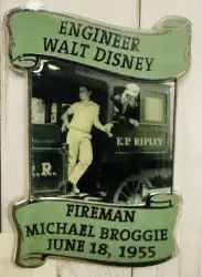 Engineer - Steam Train - Fireman Michael Broggie - June 18, 1955 - Green is a Limited Edition (LE) 1955 pin from the Walt Disney pin series. It was originally released on , 2005 and was available from Disneyland Resort .
