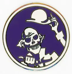 Ezra in a Purple Circle is an Open Edition pin from the The Haunted Mansion Hitchhiking Ghosts Circle Silhouettes pin series. It was originally released on , 2002 and was available from Walt Disney World .