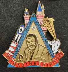 WED;Walt Disney Imagineering 50th Anniversary is a Limited Edition (LE) 100 pin from the Disneyana Fun Fairs 2002 pin series. It was originally released on , 2002 and was available from an Officially Licensed Disney trading pin vendor (see description for more information).