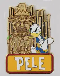 Donald & Pele chaser only is a Limited Edition (LE) 50 pin from the Enchanted Tiki Room 50th Anniversary Event - Tiki Garden Mystery Set pin series. It was originally released on , 2013 and was available from Disneyland Resort .