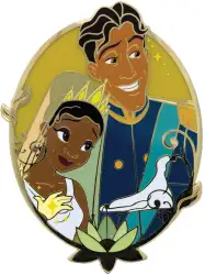 Pin features Tiana and Prince Naveen from The Princess and the Frog