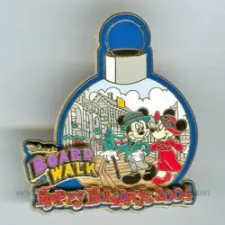 Happy Holidays 2004 - Boardwalk is a Limited Edition (LE) 1000 pin from the Resort Holiday Collection 2004: Happy Holidays pin series. It was originally released on , 2004 and was available from Walt Disney World .