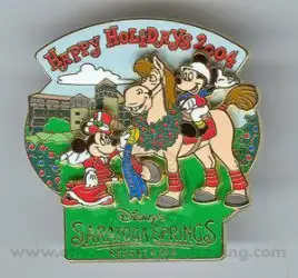 Happy Holidays 2004 - Saratoga Springs Resort & Spa is a Limited Edition (LE) 1000 pin from the Resort Holiday Collection 2004: Happy Holidays pin series. It was originally released on , 2004 and was available from Walt Disney World .