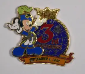 3rd Anniversary is a Limited Release pin from the Tokyo DisneySea Anniversaries Disney pin series. It was originally released on , 2004 and was available from Tokyo Disneyland Resort .