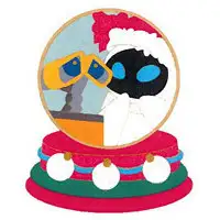 WALL-E and EVE is a Limited Edition (LE) 300 pin from the Christmas Snow Globes pin series. It was originally released on , 2012 and was available from Disney Studio Store Hollywood / Soda Fountain .