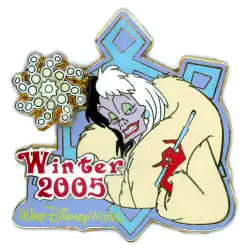 Cruella de Vil is a Limited Edition (LE) 1000 pin from the Villains Surprise Release Winter 2005 pin series. It was originally released on , 2005 and was available from Walt Disney World .