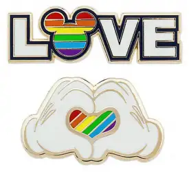 Love with Mickey Icon and Mickey Hands is an Open Edition pin from the Rainbow Disney Pride Collection pin series. It was originally released on , 2018 and was available from Disney Store UK .