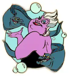 Ursula with Flotsam & Jetsam is a Limited Edition (LE) 100 pin from the Disney Auctions Villains and Sidekicks Set pin series. It was originally released on , 2004 and was available from Disney Auctions .