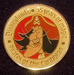 Hook and Pirates of the Caribbean is a Limited Edition (LE) pin from the Disneyland: 35 Years of Magic pin series. It was originally released on , 1990 and was available from Disneyland Resort .