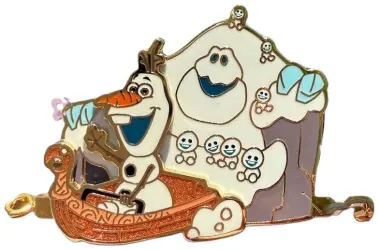 Pin features Olaf and Marshmallow from Frozen and Frozen II