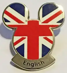 English - United Kingdom flag is a pin from the Cast Exclusive Language Mickey Heads pin series. It was available from Disney Store UK .