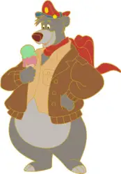 Baloo (TaleSpin Outfit) is a Limited Edition (LE) 400 pin from the (PTD) Pin Trader's Delight Series pin series. It was originally released on , 2024 and was available from Disney Studio Store Hollywood / Soda Fountain .