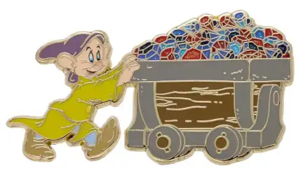 Dopey Mine Cart with Jewels is an Open Edition pin from the Pink A La Mode (PALM) Exclusives pin series. It was originally released on , 2024 and was available from an Officially Licensed Disney trading pin vendor (see description for more information).