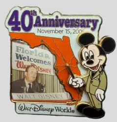 Walt Disney - Disney World Announcement is a Limited Edition (LE) 1500 pin from the Walt Disney World 40th Anniversary pin series. It was originally released on , 2005 and was available from Walt Disney World .