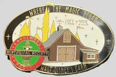 Carolwood Pacific Barn - Where the Magic Began - 1955-2005 is a Limited Edition (LE) 1955 pin from the Walt Disney Family Foundation pin series. It was originally released on , 2005 and was available from an Officially Licensed Disney trading pin vendor (see description for more information).