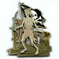 Skeleton with Ship Wheel is a Limited Edition (LE) 1250 pin from the Pirates of the Caribbean - Legend of the Golden Pins pin series. It was originally released on , 2006 and was available from Disneyland Resort .
