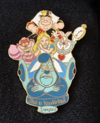 Alice, Queen of Hearts, Cheshire Cat, White Rabbit, Caterpillar - Cluster is an Open Edition pin from the Disneyland Attractions (2003) Collection pin series. It was originally released on , 2002 and was available from Disneyland Resort .