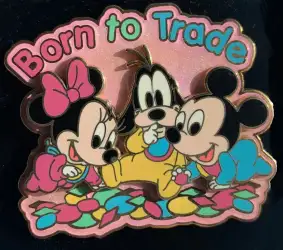 Born to Trade - Baby Mickey, Minnie, Goofy is a Limited Edition (LE) 500 pin from the Pin Trading Nights 2006 pin series. It was originally released on , 2006 and was available from Disneyland Resort .