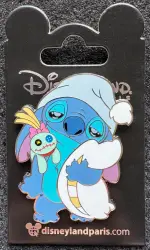 Stitch and Scrump is an Open Edition pin from the Waking Up Morning Pajamas pin series. It was originally released on , 2024 and was available from Disneyland Resort Paris .