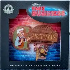 Gepetto's Custom Woodworks is a Limited Edition (LE) 1500 pin from the Faux Business Boxed Series pin series. It was originally released on , 2024 and was available from Disneyland Resort .