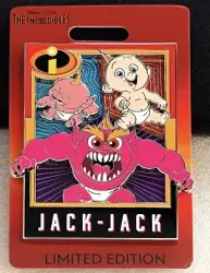 Jack-Jack is a Limited Edition (LE) 300 pin from the Incredibles 20th Anniversary pin series. It was originally released on , 2024 and was available from Walt Disney Imagineering .