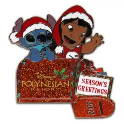 Disney's Polynesian Resort - Lilo and Stitch - Season's Greetings Mailbox is a Limited Edition (LE) 750 pin from the Resort Holiday Collection 2012: Season's Greetings Mailbox pin series. It was originally released on , 2012 and was available from Walt Disney World .