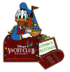Disney's Yacht Club Resort - Donald Duck - Season's Greetings is a Limited Edition (LE) 500 pin from the Resort Holiday Collection 2012: Season's Greetings Mailbox pin series. It was originally released on , 2012 and was available from Walt Disney World .