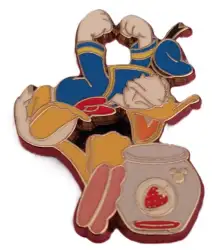 Angry Donald with Empty Jar is an Open Edition pin from the SDR Hidden Mickey Series 2021: Strawberry Jam pin series. It was originally released on , 2021 and was available from Shanghai Disney Resort .