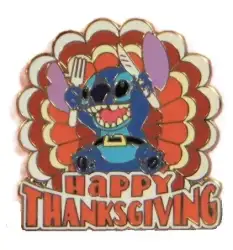 Stitch is a Limited Edition (LE) 3000 pin from the Thanksgiving pin series. It was originally released on , 2009 and was available from Multiple Sources (WDW, DLR, etc.).