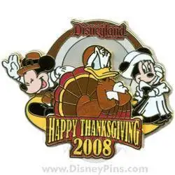 Happy Thanksgiving 2008 - Mickey, Minnie & Donald is a Limited Edition (LE) 1000 pin from the Thanksgiving pin series. It was originally released on , 2008 and was available from Disneyland Resort .